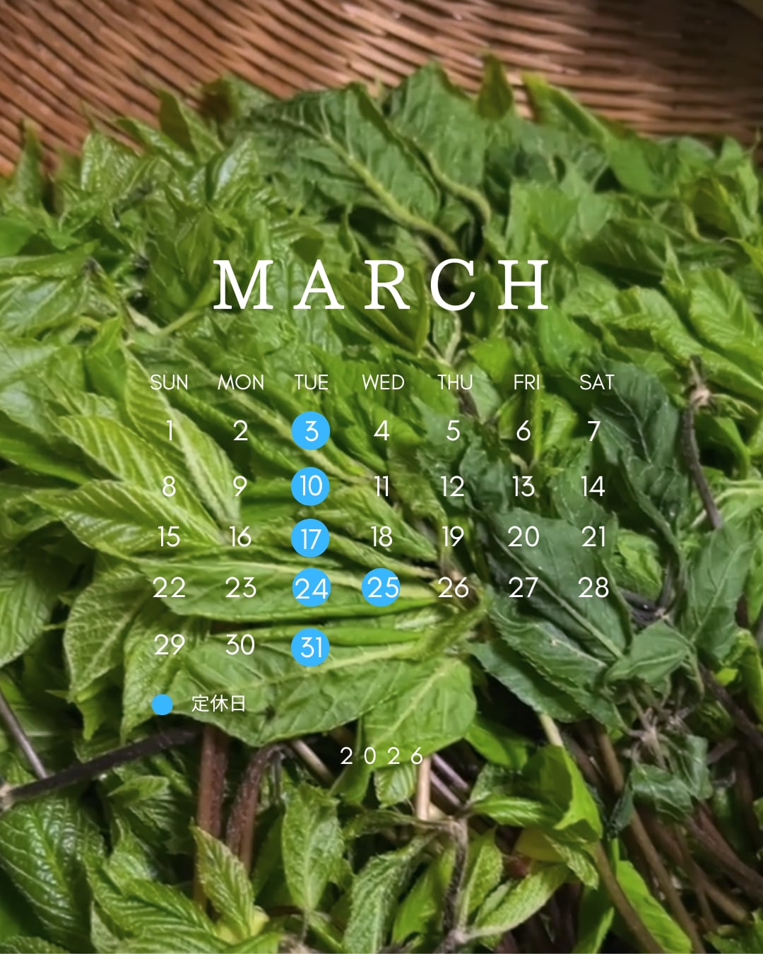 冬期期間の夜営業は、ご予約がない場合closeとなります。